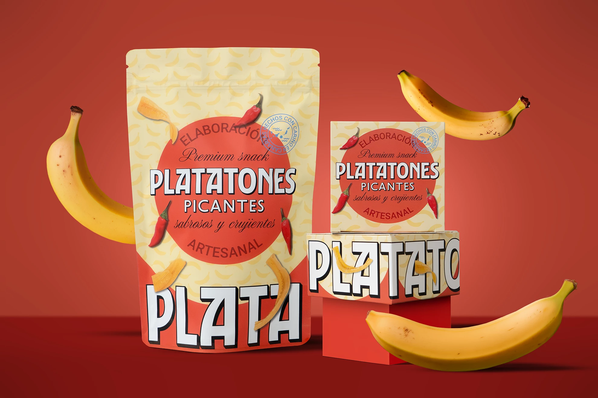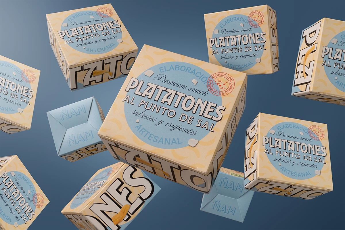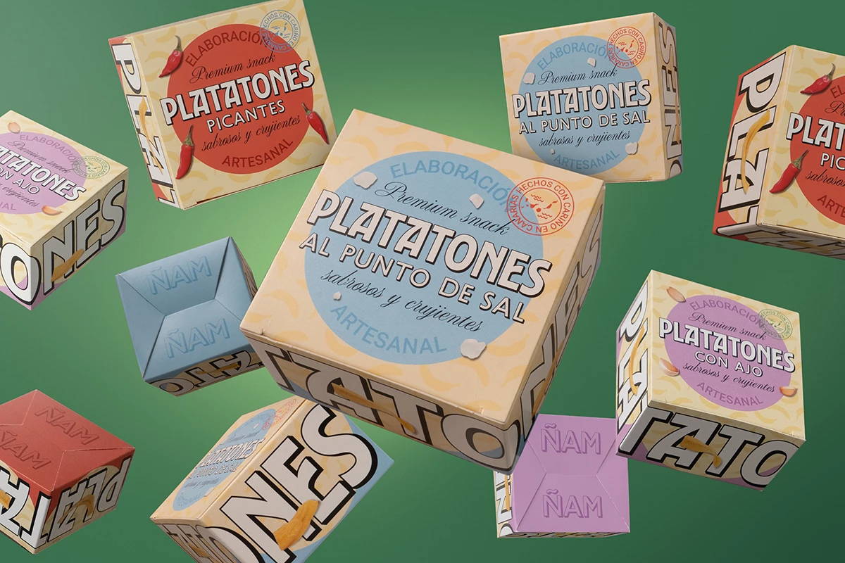 Platatones nace con una idea clara: crear un packaging capaz de transmitir todo lo que hace especial a este snack de plátano frito desde el primer vistazo: su origen, su autenticidad y su sabor inconfundible.